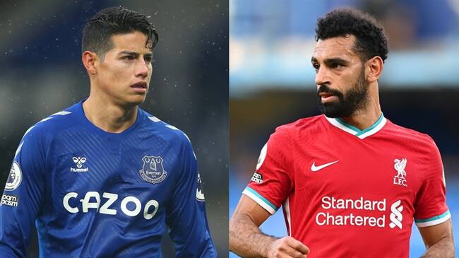 James Rodríguez contra Mohamed Salah en el clásico de Liverpool. Foto: Getty(Thot)