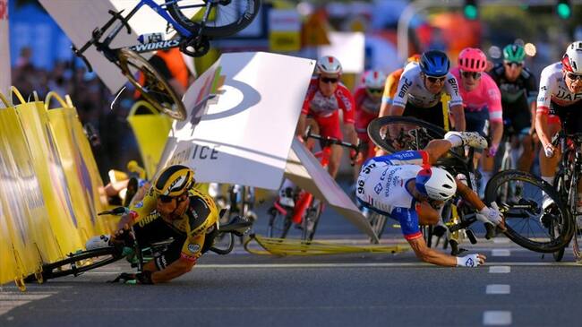 En el sprint final de la primera fracción, Dylan Groenewegen cerró a su compatriota Fabio Jakobsen, que tras chocar contra las vallas de protección cayó de forma brutal, un espectador que se encontraba en la línea de meta también fue atropellado por Jakobsen.