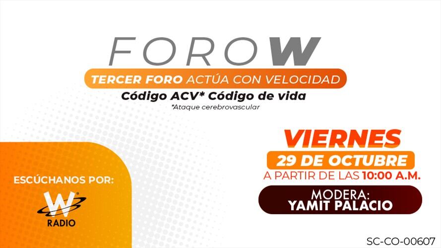 El próximo 29 de octubre, a partir de las 10:00 am, en la W se realizará el III Foro Actúa Con Velocidad. ‘Código ACV, Código de vida’, moderado por Yamit Palacio.