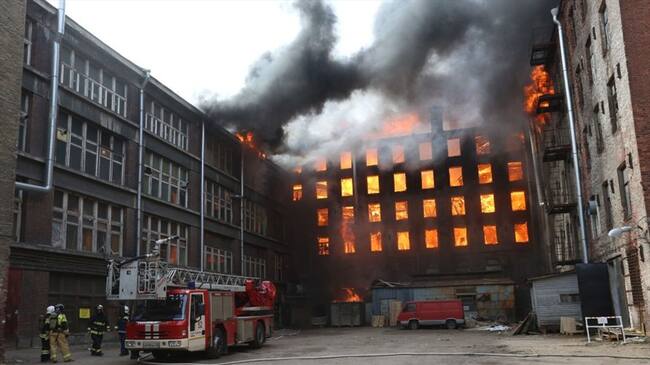 Gigantesco incendio en fábrica histórica en San Petersburgo