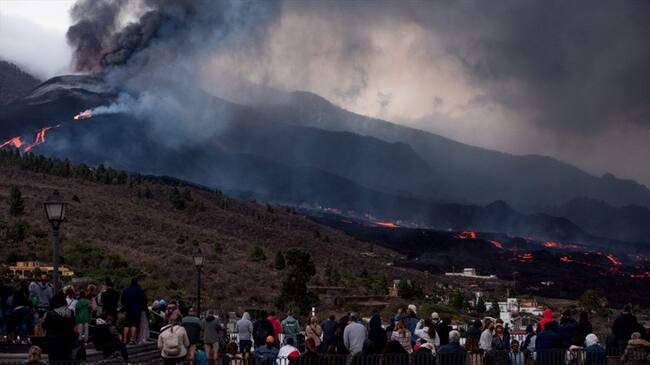 Ciudadanos observan la erupción del volcán Cumbre Vieja en Isla Palma, España. Foto: Getty Images/Anadolu Agency(Thot)