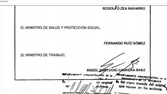 En concreto, tal y como lo señaló la Secretaria Jurídica del Departamento Administrativo de la Presidencia de la República, en el mencionado decreto no se registran las firmas del ministro de Salud y Protección Social Fernando Ruíz Gómez, ni de la ministra de Ciencia, Tecnología e Innovación Mabel Gisela Torres Torres sin que, por lo demás, al proceso se haya allegado algún tipo de justificación que permita explicar su ausencia, incapacidad o impedimento para conocer o suscribir el entonces Proyecto de Decreto Legislativo.