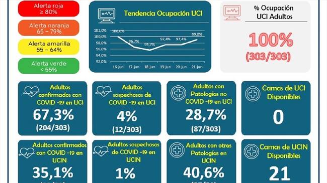 Las autoridades de salud de Manizales y Caldas, confirmaron en las últimas horas que, en el departamento se tiene un 100% de ocupación de camas UCI en los diferentes centros asistenciales, teniendo en cuenta que de 303 camas disponibles todas están ocupadas.