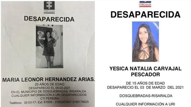 La Fiscalía General de la Nación ha recibido este mes la denuncia sobre dos casos aislados de desaparición en el municipio industrial, de las cuales una de ellas es menor de edad. Se trata de Yesica Natalia Carvajal, de 15 años de edad, y María Leonor Hernández Arias, de 20 años; quienes desaparecieron el tres y ocho de marzo respectivamente.
