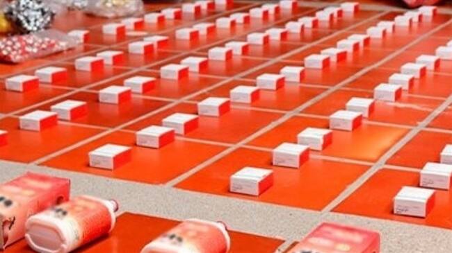 Organización dedicada a la fabricación de medicamentos con cal y cemento . Foto: Twiiter: @DIJINPolicia(Thot)