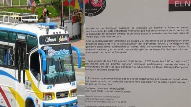 Cancelan rutas a norte de Santander por panfletos amenazantes del ELN