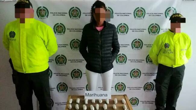 Según la coronel María Emma Caro, comandante de la Policía Metropolitana de Tunja, a la mujer le fueron halladas 24 capsulas envueltas en látex.