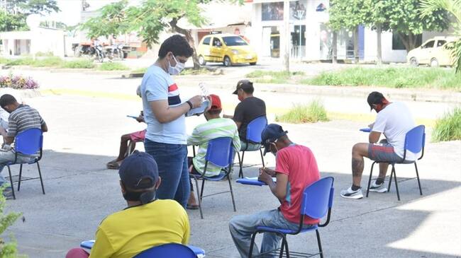 Por violar la cuarentena en el municipio de Cereté (Córdoba), cerca de 142 personas han realizado la plana “Debo respetar el Toque de Queda” en plena plaza pública.