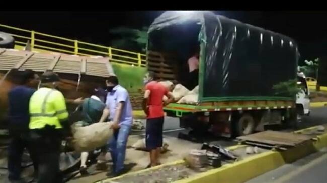 Cucuteños ayudan a conductor de camión y evitan saqueo de la mercancía