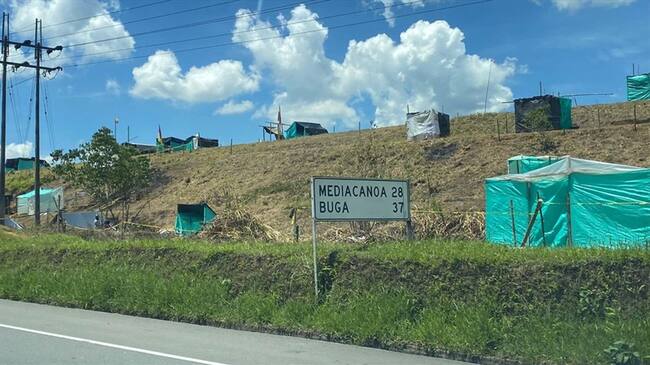 En los costados de la vía Buga - Buenaventura han sido levantados unos 200 cambuches.