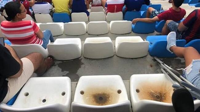 Los asistentes que, durante el fin de semana, disfrutaron del encuentro deportivo entre Unión Magdalena y Envigado se quejaron por la falta de aseo en la silletería del estadio de fútbol Sierra Nevada, que evidencia el empozamiento de agua producto de las lluvias que han caído sobe la ciudad de Santa Marta.