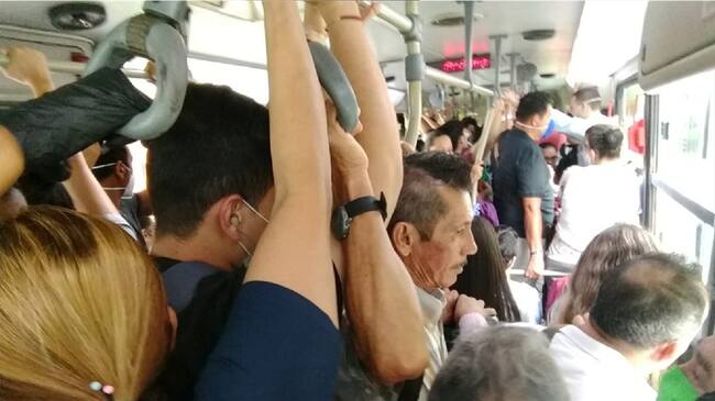 En Metrolínea se ven grandes aglomeraciones de pasajeros que no cumplirían con los requisitos para prevenir el coronavirus.