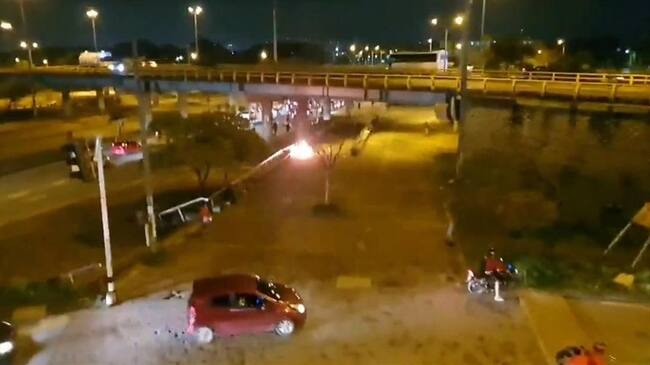 En las imágenes se observa a algunos jóvenes lanzando varios objetos y se escuchan detonaciones, al parecer, de pólvora.
