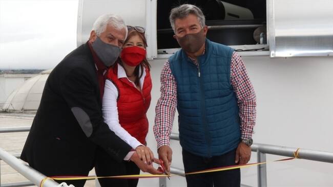 El rector de la Universidad Pedagógica y Tecnológica de Colombia en Tunja, Óscar Ramírez junto al director del Grupo de Investigación de Astrofísica y Cosmología de la Escuela de Física, Nelson Vera Villamizar, inauguraron el Observatorio Astronómico.