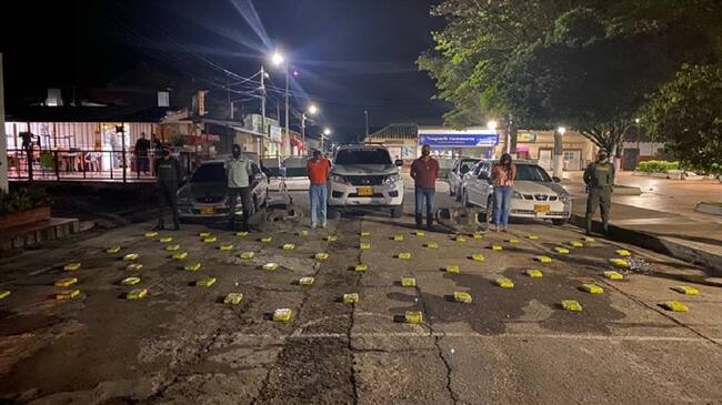 La Dirección de Antinarcóticos de la Policía Nacional, incautó en el municipio de Ábrego, Norte de Santander 71 paquetes de clorhidrato de cocaína avaluados en 2.800 millones de pesos; el estupefaciente era transportado en dos vehículos.