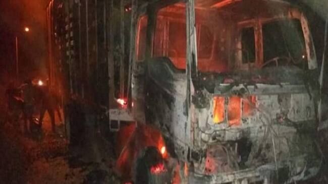 Incineran camión en Santander por no pagar la tradicional "vacuna"