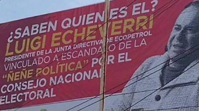 "¿Saben quién es él? Luigi Echeverri, presidente de la junta directiva de Ecopetrol, vinculado al escándalo de la ñeñe política, por el Concejo Nacional Electoral”. Eso dice una valla que está ubicada en la USO de Barrancabermeja, mensaje que ha causado revuelo y rechazo en la estatal petrolera, sin embargo, seguirá ahí hasta que la unión sindical lo decida.