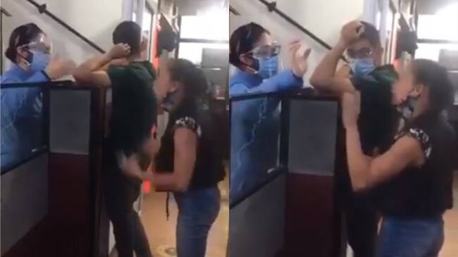 Momento en el que una mujer reclama a funcionarios de la Notaría 5 de Bucaramanga. Foto: Twitter: @qmoncaleano(Thot)