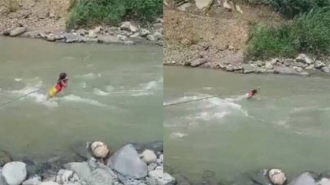 Niña indígena de Risaralda intentando cruzar un río con una cuerda causa indignación
