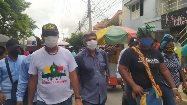 El alcalde de Cartagena, William Dau, y parte de su gabinete, participaron de la protesta de este sábado contra el abuso policial. Foto: Cortesía(Thot)