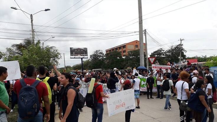 Las manifestaciones pacíficas que eran realizadas por los estudiantes de la Universidad del Atlántico, desde las 10 a.m., en el corredor universitario de Barranquilla terminaron en disturbios al finalizar la tarde luego de que los jóvenes arremetieran en contra de dos militares, que se encontraban haciendo registro y control en la zona.