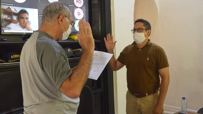 Uriel De Arco cuando tomó posesión del cargo, en octubre de 2020, ante el alcalde William Dau. Foto: Archivo(Thot)