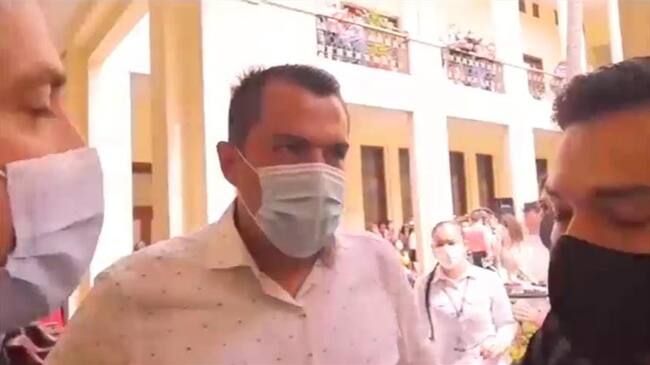 Al Palacio amarillo, en el centro de Bucaramanga, llegó Ferley Sierra, diputado de Santander, del partido Verde, a realizar una denuncia sobre la celebración del cumpleaños del gobernador Mauricio Aguilar, en el que había música, mariachis y varios de los funcionarios celebrando con su tapabocas bien puesto.