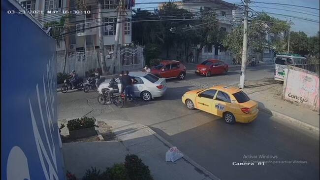 Una nueva modalidad de atraco en las vías de los barrios de Cartagena se conoció este martes tras la divulgación en redes sociales de un video de cámara de seguridad del barrio El Country, donde se ve cuando cuatro hombres a bordo de motocicletas y armados intimidada al conductor de un vehículo y lo despojan de sus pertenencias.