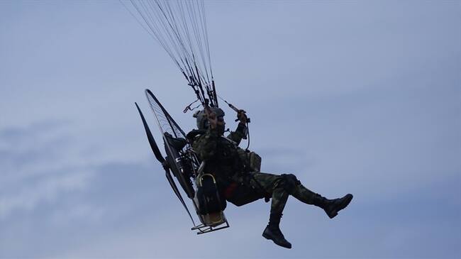 Soldado protagoniza dramático momento al caer luego que su paracaídas no abriera. Foto: Colprensa - Camila Díaz(Thot)