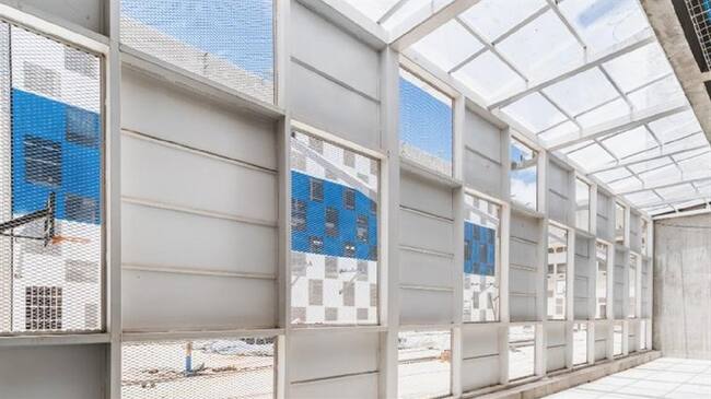 agua que bombea a cada bloque con un sistema de distribución de gravedad.El proyecto en sus zonas exteriores tiene un sistema de cerramiento con 3000 metros de malla de alta seguridad de 358 refuerzos, que cumple con estándares de calidad y posee las características físicas y condiciones de seguridad exigidas para un penitenciario de esta categoría; se entregaron también 5 garitas debidamente adecuadas para el personal de seguridad".