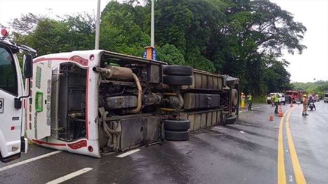 Organismos de socorro de Manizales, atendieron el volcamiento de un bus de turismo con varias personas heridas en la vía Manizales - Medellín, cerca al sector de Tres Puertas.