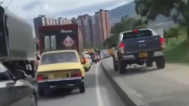 Buscan al conductor que invadió una ciclo ruta en Bello, Antioquia. Foto: Captura de video en redes sociales(Thot)