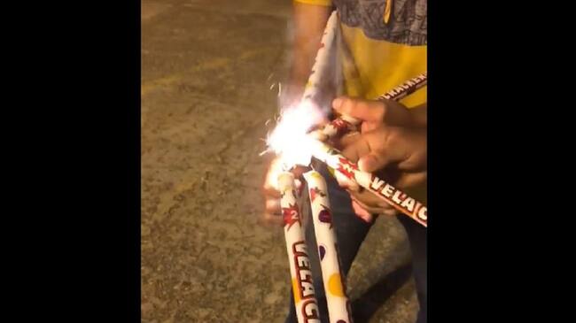 [Video]: Jóvenes juegan a lanzarse pólvora en una cancha en Santander
