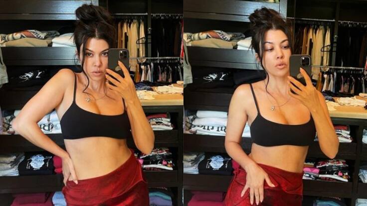Kourtney Kardashian ha recibido miles de elogios en redes sociales luego de compartir una fotografía en donde luce un vestido color vinotinto que utilizó como una falda larga.