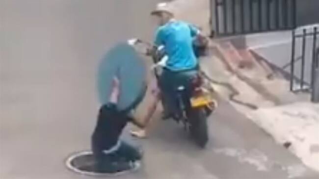 Ladrón intentó robarse una alcantarilla, pero se cayó en el hueco. Foto: Twitter: @Diegocoffes(Thot)