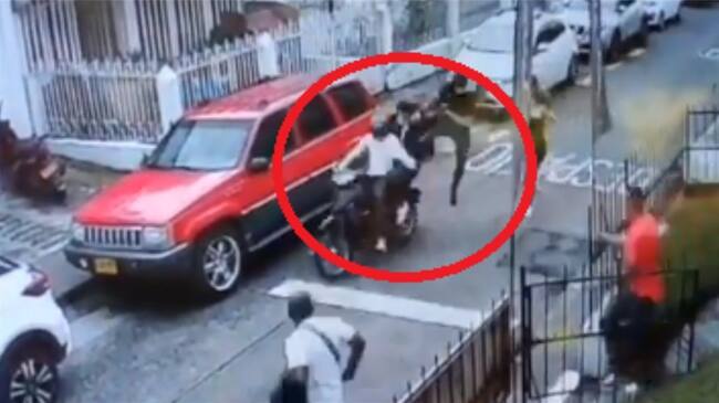 En un video que se volvió tendencia en redes sociales se aprecia cómo un hombre, a quien apodaron ‘Jackie Chan colombiano’, interviene para evitar que dos ladrones escapen en una moto luego de robar a una mujer que estaba en un carro.