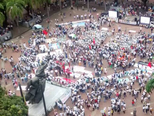 -FOTOGALERÍA- AME2173. BOGOTÁ (COLOMBIA), 01/05/2024.- Ciudadanos se congregan en la céntrica Plaza de Bolívar al final de una marcha con motivo Día Internacional de los Trabajadores este miércoles, en Bogotá (Colombia). El 1 de mayo, el Día Internacional del Trabajador, se conmemoró con diversas manifestaciones en América Latina, donde trabajadores de varios países salieron a las calles para exigir mejoras laborales y protestar contra las políticas económicas actuales, y algunos líderes prometieron mejoras y nuevas leyes, como el colombiano Gustavo Petro, el brasileño Lula da Silva, el chileno Gabriel Boric, el boliviano Luis Arce y el venezolano Nicolás Maduro. EFE/ Mauricio Dueñas Castañeda