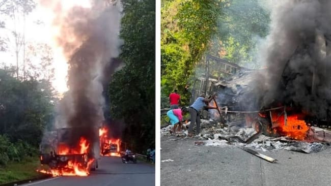 ELN quemó furgones en la vía Panamericana entre Risaralda y Chocó